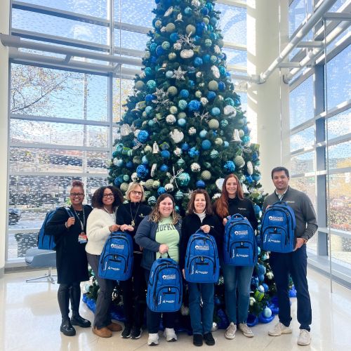 A sponsor group packs Roc Solid Ready Bags to be provided to families who are diagnosed with pediatric cancer during the holiday season. While…